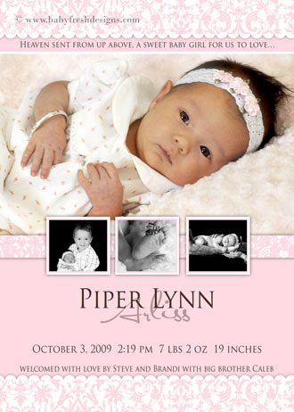 Any of our single baby birth announcements can be made into