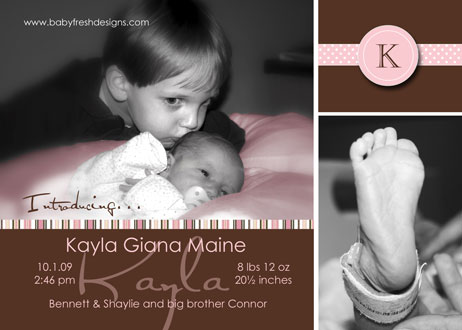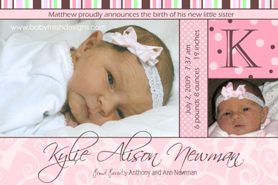 A brown and pink birth announcement