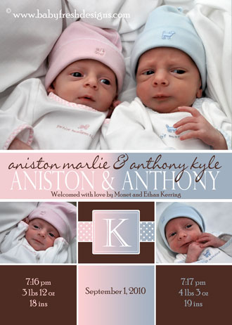 This twin birth announcement can