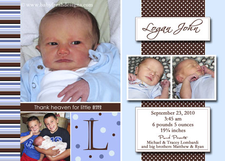 boy birth announcement can show four of your photos