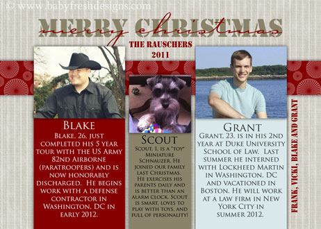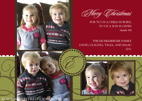 Changing up the colors on the Austen Family design - instead of blue and red we customized it to be green and red for a more traditional holiday feel.