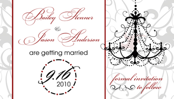 The Matching Save the Date Magnet with red accents